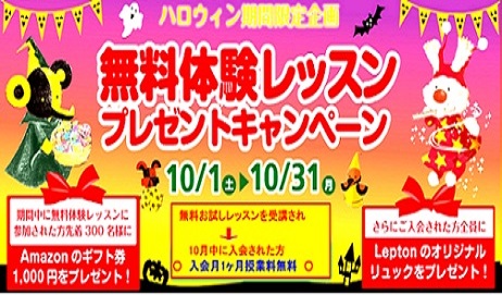 さらに、入会月1ヶ月授業料無料のハロウイン キャンペ−ン
