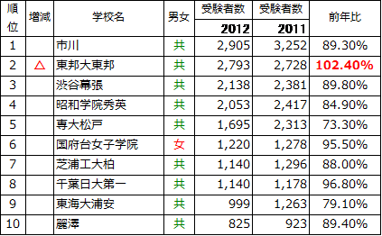 受験者数の上位校はだいたいどこも前回よりも受験者数を増やしていますね。