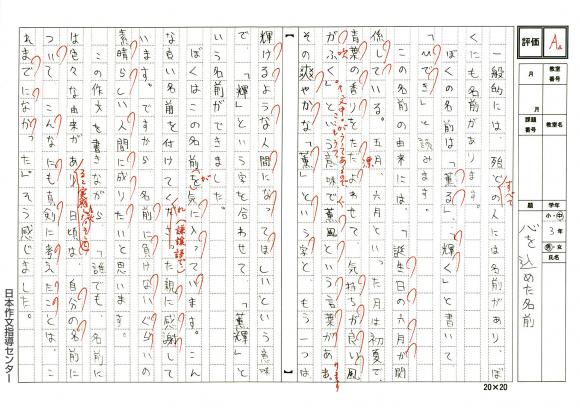 「日本作文指導センター」と提携した月1回の作文添削指導で、